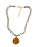 16 - 18 1/2" antique silver double chain. 1 1/4" 16k gold plated Lord's Prayer pendant. 20% of all sales will go to startwithonekenya.org.