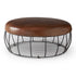 40-Inch Round Brown Leather & Black Metal Coffee Table