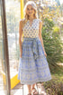 Mixed Print Waist Tie Sleeveless Midi Dress