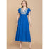 Capture attention in the striking blue Bohera Willa dress! Featuring gorgeous embroidery and flowing lines, this dress is sure to make a statement. The side ruffle sleeve treatments add a touch of grace and allure for a bold and alluring look!