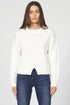 You know those days when you need to feel warm and comfortable, but still want to look modern and interesting? This Hera knit sweater is exactly what you're looking for. It's a chunky, cozy pullover, but the details make it feel so fresh. That center seam down the front and the little split hem at the bottom are genius—they add just enough visual interest to make it stand out from a basic crewneck. The cropped length is perfect for wearing with all your high-waisted jeans and trousers, creating a really flattering silhouette. It’s that perfect cream color that brightens up your face and your whole outfit!