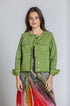 Turtle Green Collarless Jean Jacket With Frayed Detail