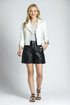 Made of perforated lamb leather, this moto jacket has a lightweight and edgy design, with 3/4 sleeves and a tailored fit for a modern and biker-inspired look.