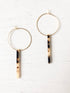 Gold plated hoop with dark tortoise resin detail. Earrings measure approximately 2-5/8’’ in length.