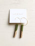 Gold fill hoops with wood and resin detail. Natural feel and midcentury modern reminiscent. Earrings measure approximately 3” in length.