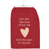 Celebrate your relationship with humor and style using this charming red cotton kitchen towel from our Valentine's Day Collection. Featuring a rustic heart design paired with the witty sentiment "You Are The Love Of My Life - And The Pain In My Ass," it's the perfect blend of affection and playful honesty. Machine-washable for easy care, this versatile towel works beautifully as a seasonal kitchen staple or makes an ideal gift for the person who appreciates candid romance. Comes ready to display on a hanger, making it an instant conversation starter in any kitchen.