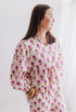 The detailed and coordinating border print perfectly complements the set, adding an extra touch of elegance. The top features a beautiful neck tie with ruffle detail, offering a sophisticated and stylish look.