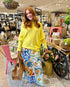 There is something so effortlessly chic about a Mediterranean-inspired tile print. This skirt features a vibrant mix of sunny yellows, deep blues, and citrus motifs that instantly brighten your mood. The fabric is a dream—a blend of viscose and linen that gives you that classic linen look without being quite so prone to stiff wrinkles. I love the clever design: the front has a clean, flat seam for a polished, put-together look, while the back features an elastic waistband so it actually moves with you and stays comfortable all day long. And yes, it even has pockets!