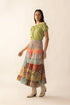 Float through your day in this enchanting tiered maxi skirt featuring a stunning patchwork of vibrant hues. Artisanal color blocks flow from dusty rose to emerald to amber, creating a bohemian masterpiece. The flowing silhouette promises effortless movement and free-spirited style