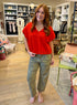 For a "cool mom" weekend look, I’d take the Tomato Red and wear it solo with some high-waisted, wide-leg tan trousers and a cute leather slide. It’s a great way to show off a bit of a tan without feeling overexposed.