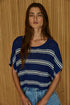 Knit Sweater Ribbed Acrylic Nylon Striped Round Neck