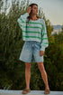 Knit Sweater Striped Crewneck Long Sleeve Top