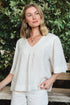 One size. Softly feminine, the Amelie Linen Top is a springtime essential with romantic details. The wide v-neckline and puff half-sleeves meet wide hems, creating a silhouette that feels as fresh as the season itself. Wear it with our Lenore Linen Pants for an effortlessly coordinated look or with jeans for easy, everyday charm. Part of our mix-and-match Italian Linen assortment.