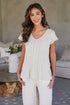 Beige Italian Modal Rib V-Neck Short Sleeve Top