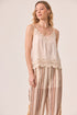 Solid slip top, long to the hips, with a V-neckline and straps.