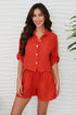 Linen Button Up Roll-Tab Sleeve Top with Front Pocket