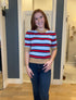 Bright, bold, and ready for any season - this striped knit top adds the perfect pop of color to your look! Featuring cheerful shades of sky blue, red, and tan with classic navy accents, it’s designed with short puff sleeves, ribbed trim, and a flattering fitted shape. The soft, stretchy knit makes it comfy while still looking polished - perfect for pairing with denim or a tailored pant.