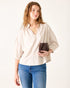 - Gathered V-neckline