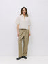 The Madden Top is a pinstripe collared shirt with a relaxed, boxy fit, mid-length sleeves, tie front, and side slits for an easy, modern silhouette.