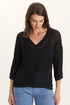 V-Neck Micro-Pleat 3/4-Sleeve Crinkle Top
