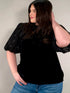 Black Velvet Blouse with Textured Puff Sleeves