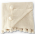 Moss Stitch Knit Throw Blanket w/Pompom Trim