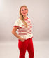 I’d pair this with high-waisted flared jeans and some platform clogs to really lean into that 70s boho vibe. It also looks darling tucked into a simple denim skirt. Since the ruffles and crochet pattern are the stars of the show, I’d keep my jewelry simple—maybe just some small gold hoops and a dainty ring.