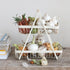 14"L Metal 2-Tier Tray with Rattan Wrapped Handle, White