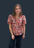 The Coral Floral V-Neck Blouse | Puff Sleeve Top