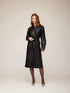 Tailored fit through the bodice with subtle volume in the sleeves; adjustable waist via tie belt. Midi length.