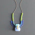 17” necklace with 18k matte gold plated chain, matte green glass, cobalt daggers, and glass pendant. 1 inch extender.