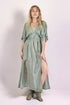 The design features an intricate rope detail that cinches the waist and enhances your silhouette, creating a flattering, flowy effect that exudes confidence and grace. The plunging neckline and adjustable rope straps provide a customizable fit, while the skirt flows beautifully with two slits on each side, offering a sense of freedom and movement.