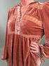 Looking for that one top that feels as comfortable as a favorite tee but looks instantly ready for a special occasion? This velvet babydoll blouse is it. The peachy, dusty rose color is just beautiful - it looks rich and warm. It's made from a super-soft blend of polyester and spandex, which gives you that gorgeous drape of velvet but with a little stretch for total comfort. I love how it features a notched V-neckline with simple wooden button-front closures, but the real star is the inset lace trim across the chest. It's got such a pretty, romantic, slightly bohemian vibe, and the babydoll fit is perfectly forgiving.