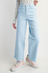Belt loops, front and back pockets, raw cut bottom, side pockets, wide legs, relaxed and loose fit, zip fly with button closure, lightweight fabric.