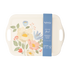 Serve up some style with our Floral Corner Tray! Made from bamboo, this tray features a beautiful floral design in the corner. Perfect for displaying snacks or organizing small items, this playful and practical tray is a delightful addition to any home. • 16.5” x 11.5” bamboo shaped tray with handles • Food safe • Dishwasher safe • Eco-friendly and sustainable • Do not microwave